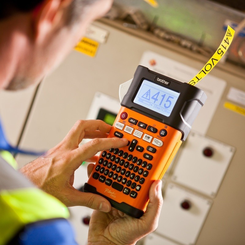 Las teclas de funciones dedicadas para la identificación de cables y otros materiales, como por ejemplo la función de rotación, bandera, panel frontal, numeración secuencial o códigos de barras, la convierten en una rotuladora electrónica perfecta para electricistas e instaladores, además, porque es compatible con las cintas de tubos termorretráctiles lo que facilita la identificación de cables con calidad profesional.