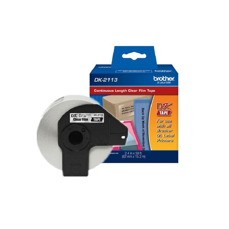 Cinta Continua Brother DK-2113 Original Transparente 62mm x 15.2m, para Rótulos, Archivos y Señalización QL Series