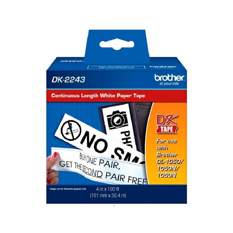 El Cinta Brother DK-2243 tiene un rendimiento excelente si se trata de impresiones de calidad, la cual te rinde para Tamaño 101mm x 30.4m de impresión aproximadamente, este cartucho DK-2243 viene con insumo tecnológico de color Blanco Rotuladora la cual ayuda a mantener su impresora en óptimas condiciones, para su rendimiento máximo del color Blanco Rotuladora se recomienda imprimir en hojas nuevas y no recicladas.