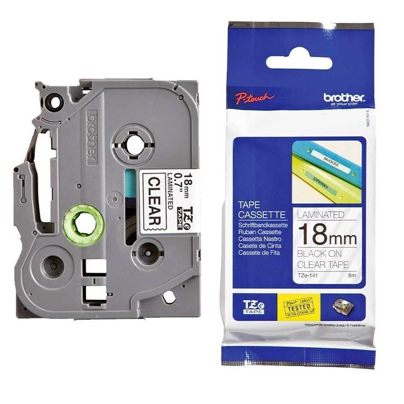 La Cinta Brother TZe-141 es el consumible perfecto para aplicaciones que requieren la máxima visibilidad y espacio para texto e imágenes. Con sus dimensiones de 18mm de ancho por 8 metros de largo y el contraste de texto negro sobre fondo transparente, esta cinta es esencial para advertencias, señalización de seguridad, paneles de identificación o códigos de barras grandes. Su ancho de 18mm ofrece una legibilidad excepcional a larga distancia, y el fondo transparente garantiza una integración limpia en cualquier superficie. Su relación precio/calidad es excelente, ofreciéndole un acabado impecable que supera todas las expectativas.
