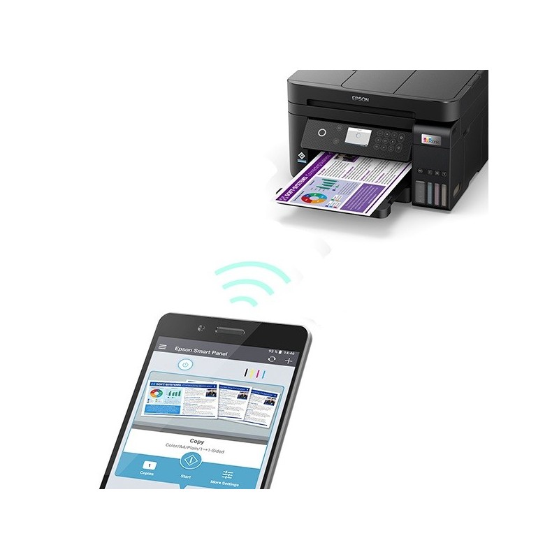 La impresora Multifuncional Epson L6270 EcoTank A4 permite imprimir de manera automática a 2 caras (Auto Duplex) y utiliza el ADF (Alimentador Automático de Documentos) para escanear lotes de forma eficiente.