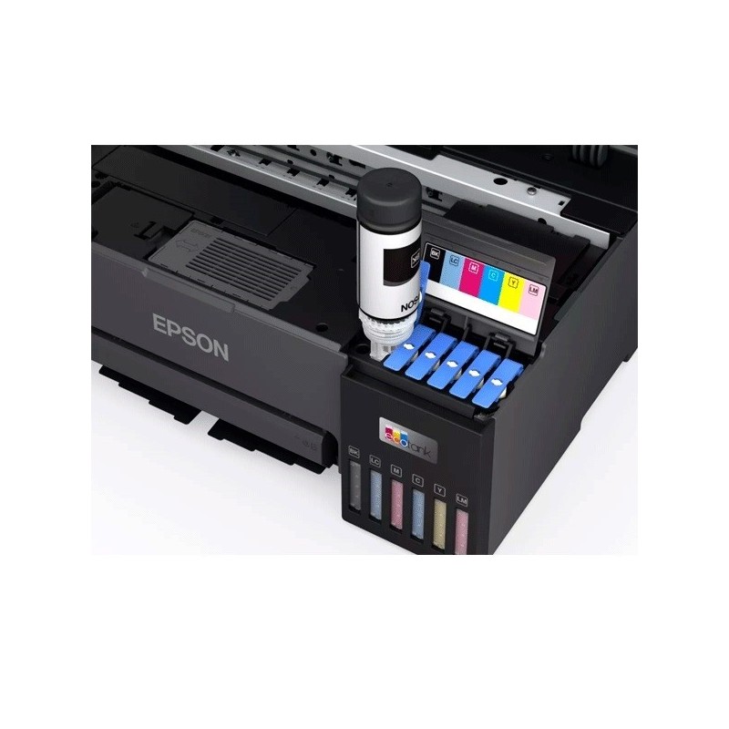 La Epson EcoTank L8050 es una impresora fotográfica especializada diseñada para fotógrafos, estudios y usuarios que requieren máxima calidad de imagen y capacidad de impresión en medios especiales. Utiliza un sistema de 6 tanques de tinta (incluyendo Cian Claro y Magenta Claro) para colores vibrantes y transiciones suaves.