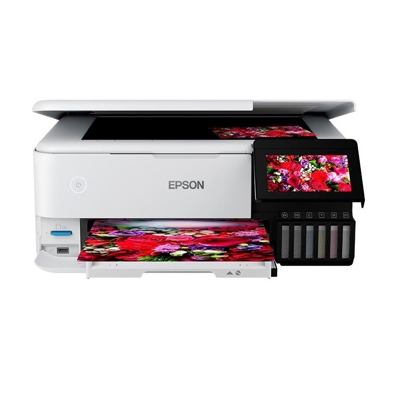 La configuración de 6 tintas Claria ET (con Negro Pigmentado y Gris) garantiza una gradación superior, tonos de piel precisos y una calidad de texto resistente al agua. Además, es un equipo Multifuncional que incorpora escáner y copiadora.