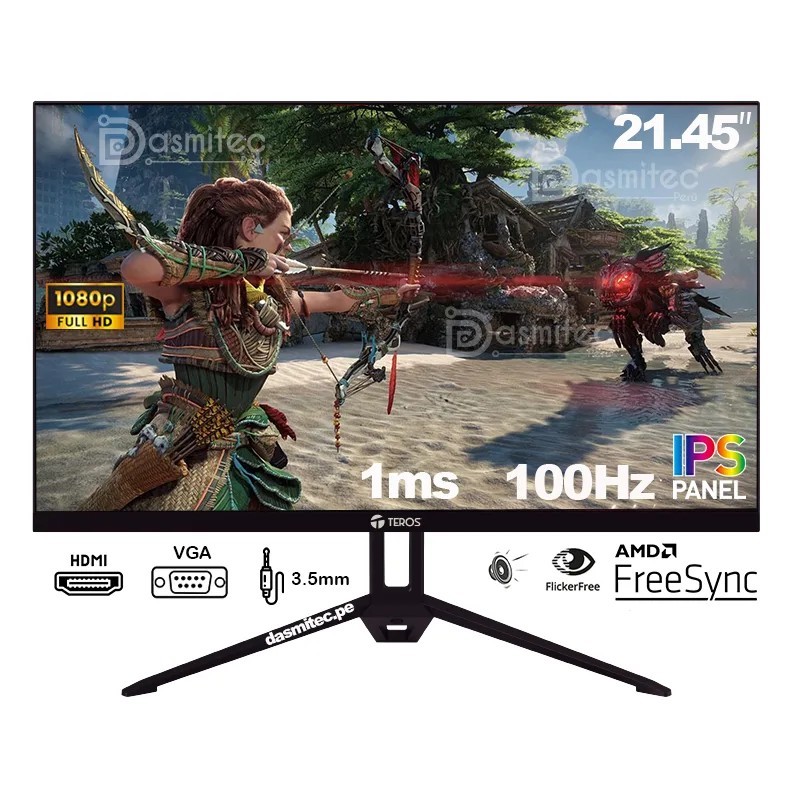 Monitor Teros TE-2123S, 21" IPS, FHD 21" con una resolución 1920 x 1080, tiempo de respuesta de 1ms y su tasa de refresco de 100 hz, Angulo de Visión 178°/178° Relación de aspecto 16:9. El monitor TEROS TE-2123S es un equipo diseñado para ofrecer un equilibrio entre calidad de imagen y rendimiento ágil, siendo una opción versátil tanto para tareas de oficina o estudio como para entretenimiento y gaming ligero. Aquí está la descripción detallada del producto: