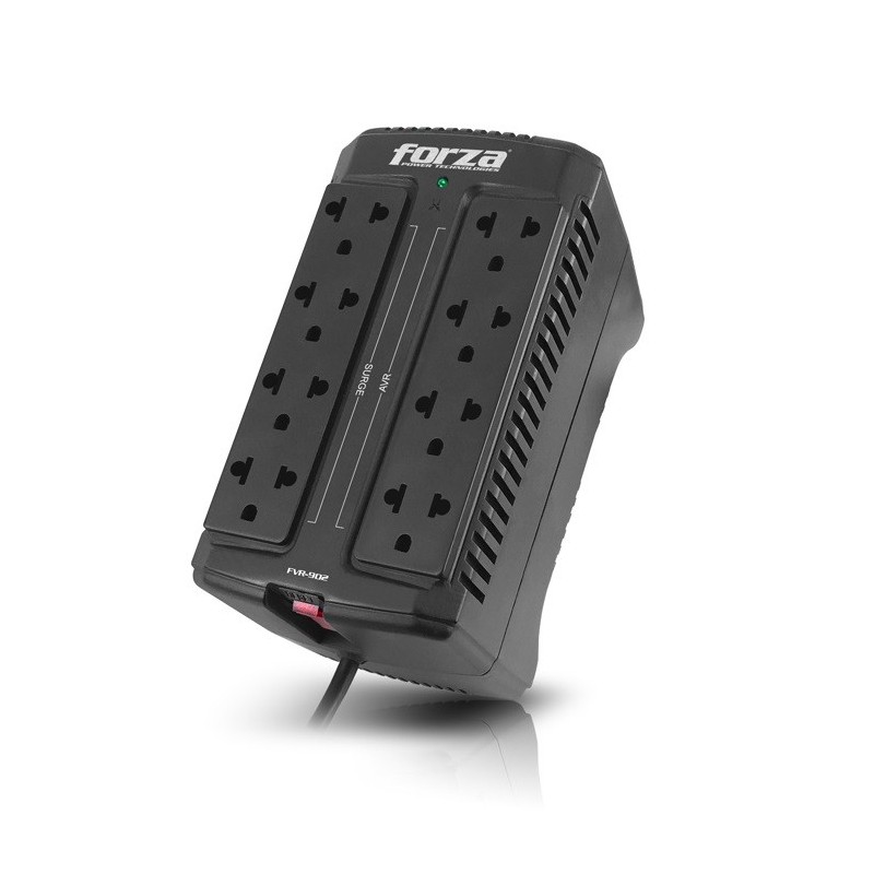 El regulador de voltaje automático Forza, también conocido como estabilizador de voltaje, es la solución confiable que brinda la protección adecuada para su equipo contra sobretensiones, subtensiones y caídas de voltaje severas. Además de su excelente capacidad de estabilización, el FVR corrige automáticamente las fluctuaciones transitorias de voltaje y filtra el ruido eléctrico para proporcionar energía CA regulada y “limpia”. Forza FVR-902 es la elección perfecta para mejorar el rendimiento y proteger sus valiosos componentes.