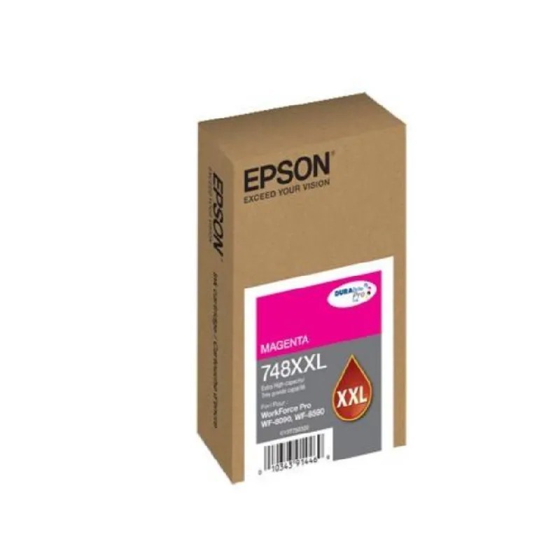 Tinta Epson T748XXL320-AL Magenta te brinda mayor calidad y cantidad de hojas impresas a un bajo costo. Produce tus documentos, informes o fotos con colores intensos y nítidos gracias a su excelente tecnología de impresión Durabrite. Imprime hasta 7000 páginas. Ideal para la impresión empresarial, esta tinta ofrece texto negro nítido para cualquier presentación.