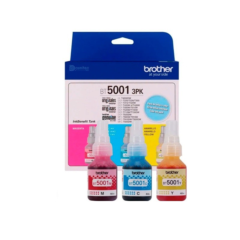 TRIPACK BROTHER 3PK-TANK BT5001, Cyan, Magenta, Yellow Ink Benefit Tank de ultra alto rendimiento aproximado para 5,000 páginas