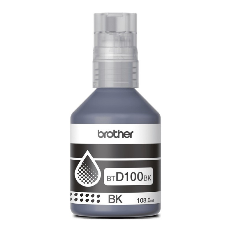 Tinta Brother BTD100BK de color negro de ultra alto rendimiento BTD100BK de la serie InkBenefit Tank de Brother. Proporciona negros intensos y nítidos para una impresión de calidad profesional. La innovadora botella de tinta antiderrames reabastece el tanque en segundos. Imprime hasta 7.500 páginas.