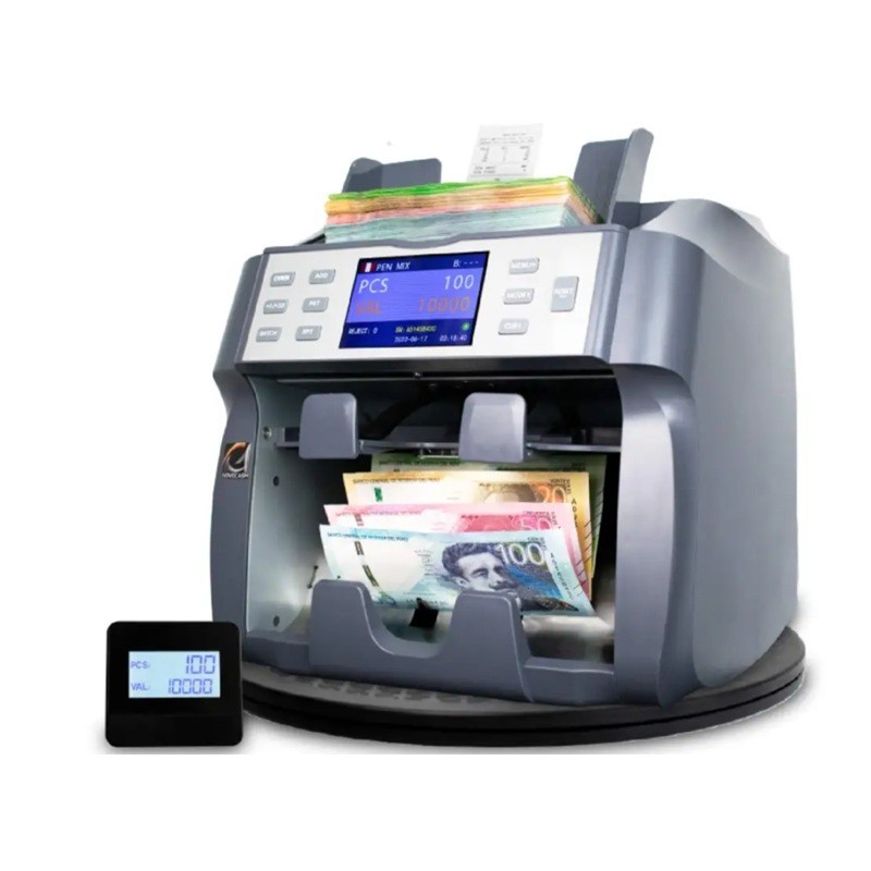 La Clasificadora y Contadora de billetes NOVO 6000 posee sensores de última tecnología para la identificación de billetes sospechosos e integra una impresora térmica además de un display para facilitar el proceso de conteo. Es ideal para procesos de alta exigencia, trabajo continuo y verificación del efectivo.